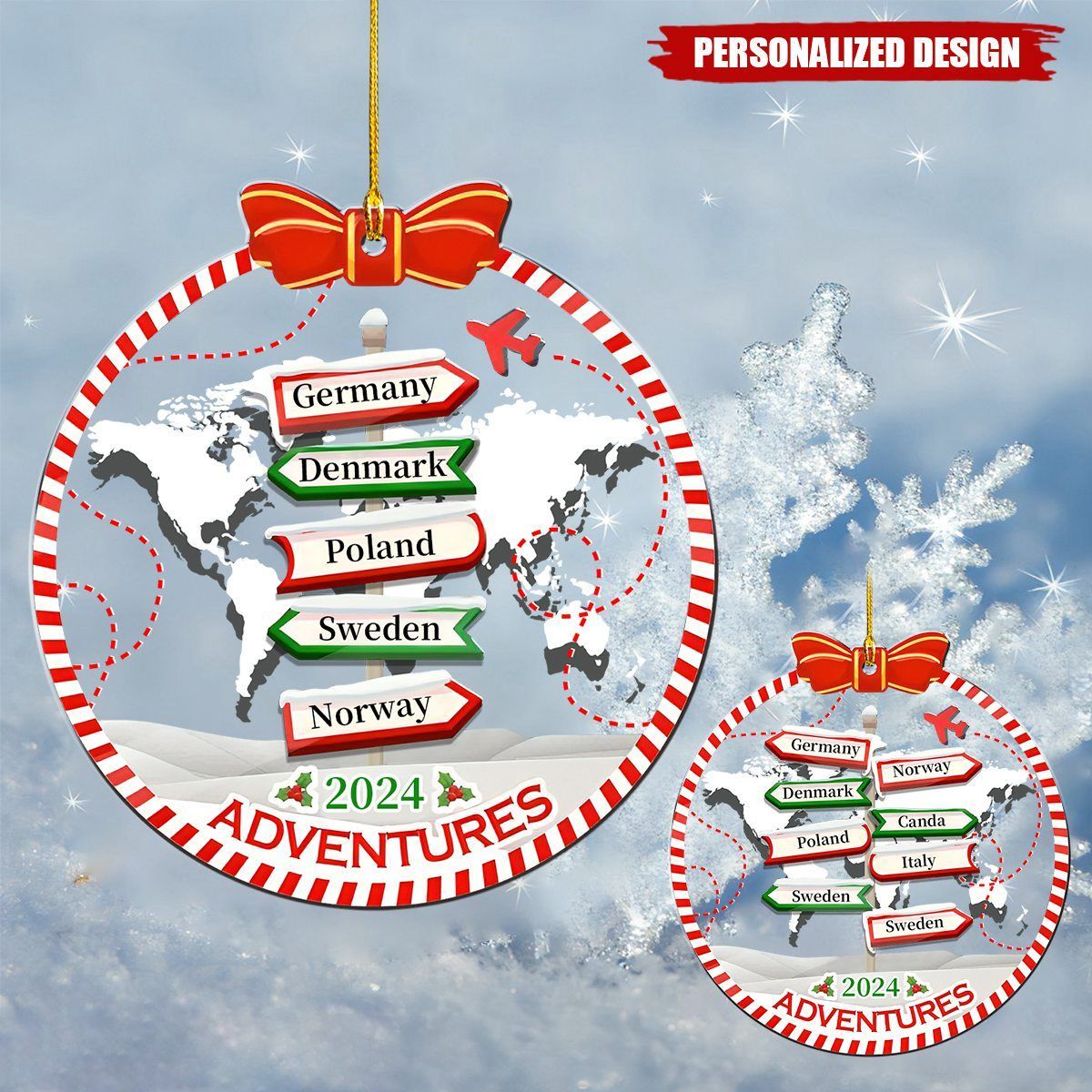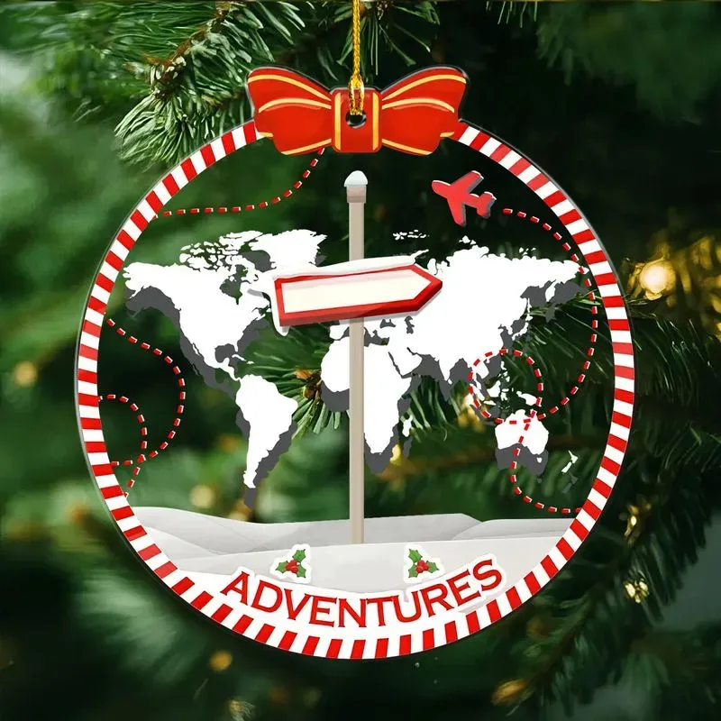 Personalized Travel Adventure Ornament, Traveling Christmas Ornament